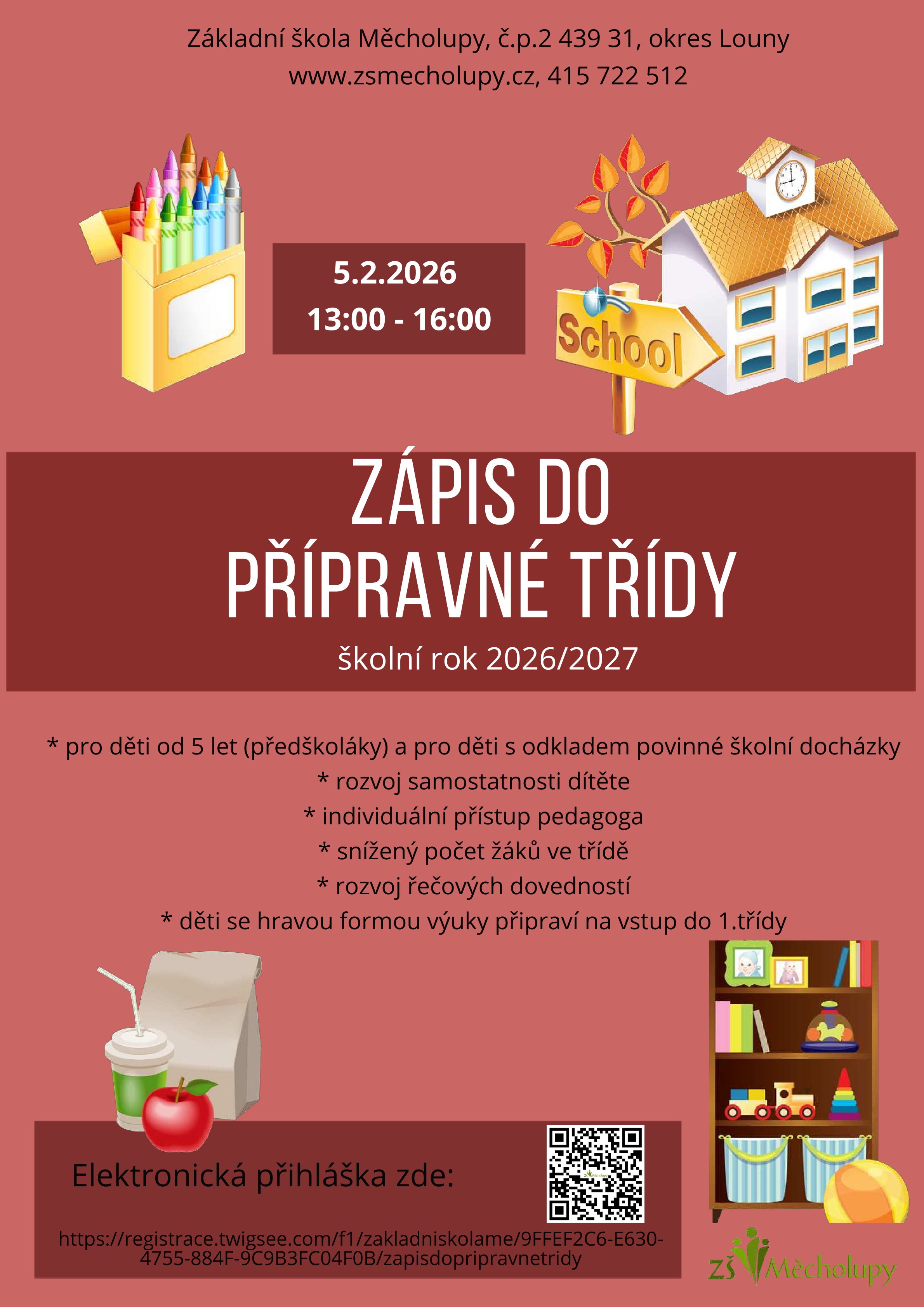 Zápisy do přípravné a 1. třídy budou probíhat 5.února.